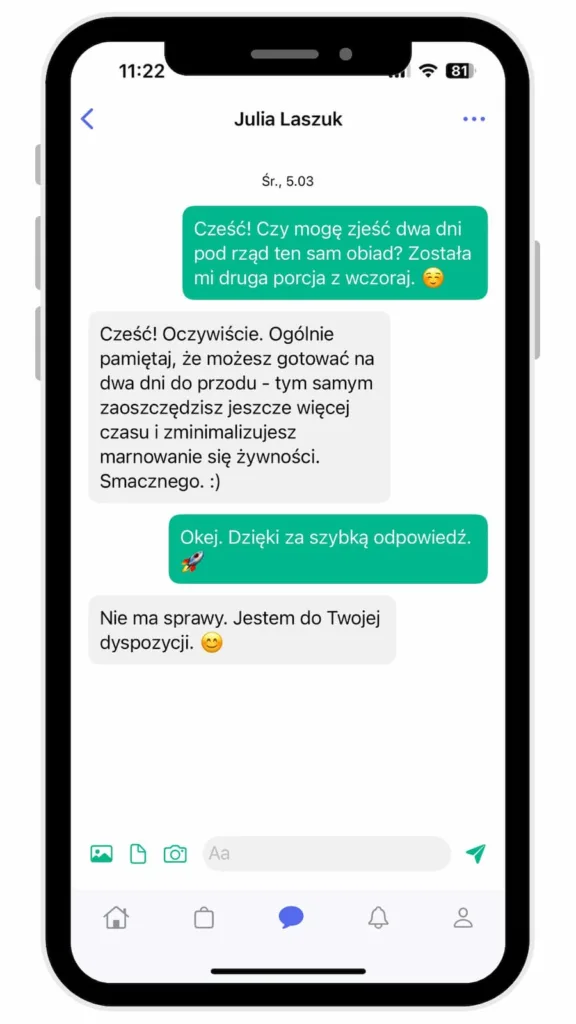 - cotygodniowa analiza Twoich postępów i samopoczucia