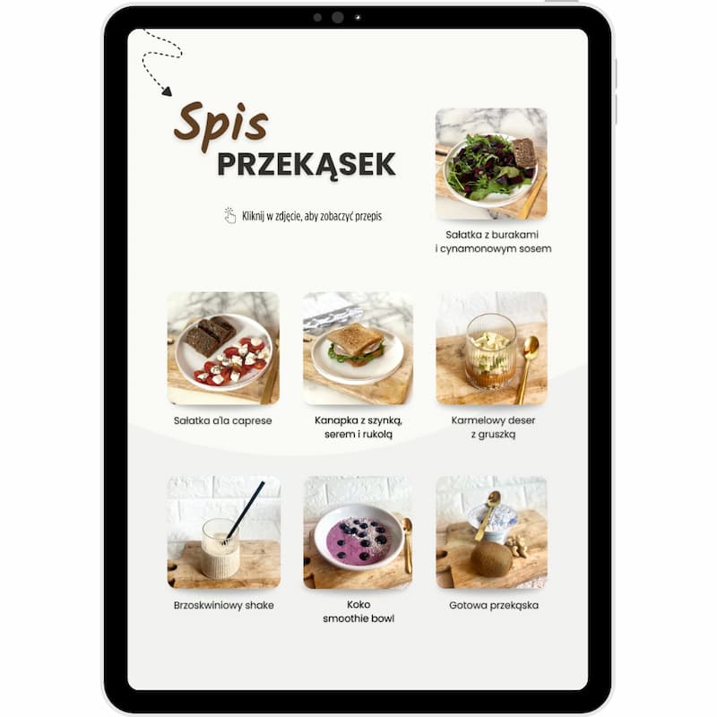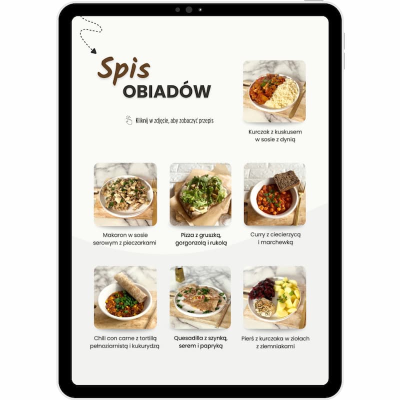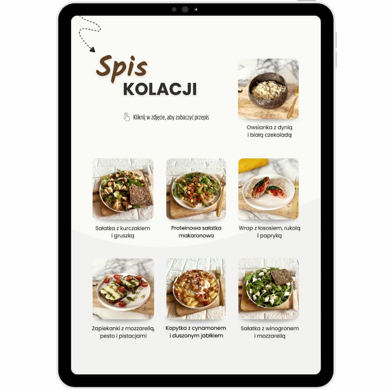 - 🎁 Poradnik do diety – znajdziesz w nim wszelkie niezbędne informacje, które pokażą Ci jak stosować dietę i jak dopasować ją do codziennego życia. Poznasz 12 tipów na przyspieszenie gotowania, dowiesz się jak zmniejszyć marnowanie jedzenia, jak połączyć dietę z jedzeniem na mieście i jak elastycznie poruszać się po jadłospisie – z naszą dietą zapomnisz o sztywnych rozpiskach raz na zawsze!